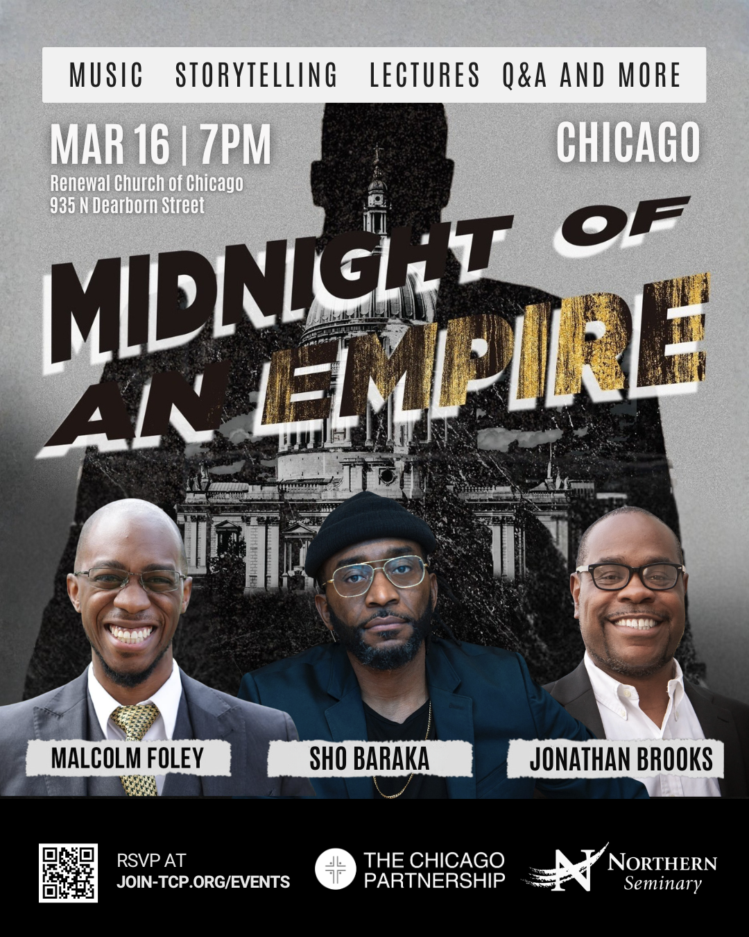 Join us on March 16, 7-9pm, for the Chicago stop of the Midnight of an Empire tour with Sho Baraka and Malcolm Foley, brought to you by The Chicago Partnership and Northern Seminary. Hosted at Renewal Church of Chicago (935 N Dearborn).